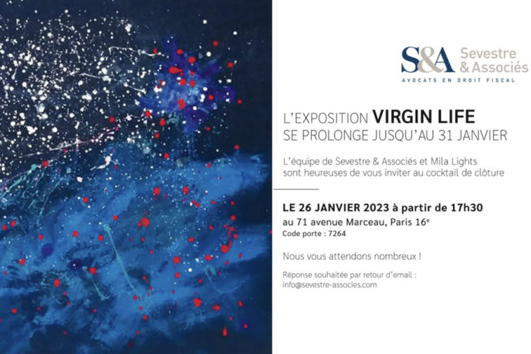 exposition solo à Paris Exposition solo à Paris/ Etoile chez Sevestre&Associés DU 24 NOVEMBRE 2022 au 31 Janvier 2023 à partir de 18h00 au 71 avenue Marceau, Paris 16e Venez découvrir le tableau Virgin Life, exposé pour la première fois à cette occasion, aux côtés d’une dizaine de mes récentes créations. – Prolongation jusqu’au 31 janvier 2023…